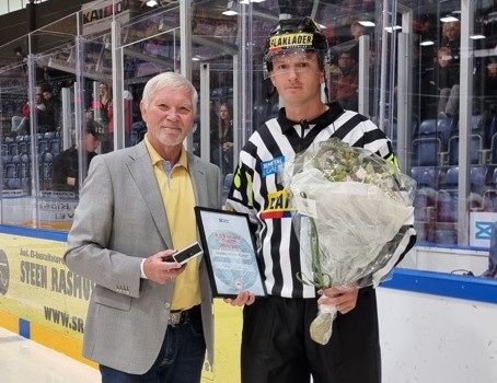 For 37. gang blev B.T.s Gyldne Fløjte til årets dommer uddelt, og Andreas Weise Krøyer fik den forgyldte fløjte overrakt på isen inden OL-testkampen mellem Danmark og Frankrig lørdag aften i Rødovre Centrum Arena.