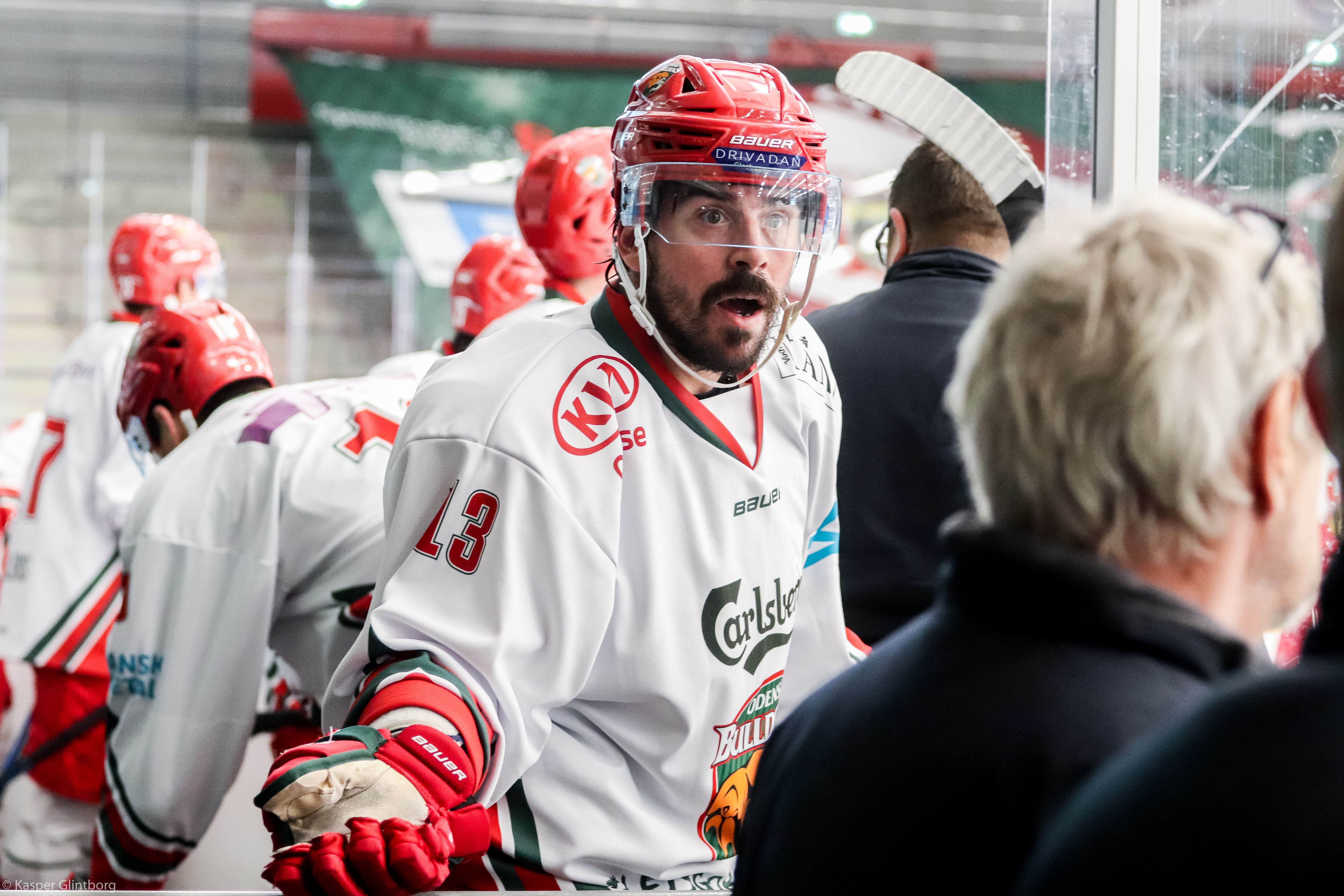 - Georg er en sjov spiller at spille sammen med. Han har masser af fart og arbejder hårdt med at få fat i de løse pucke, hvilket jeg nyder. Anker (Oliver Anker var tredjemand i kæden i går) spillede fremragende i går. Han steppede virkelig op, da han fik chancen. Om Georgs fremtid? Det må du spørge ham om. Så godt som han spiller, burde han have mange muligheder i den her liga, lyder det fra den canadiske angriber, der kører på sine sidste kampe i Danmark og i karrieren.
