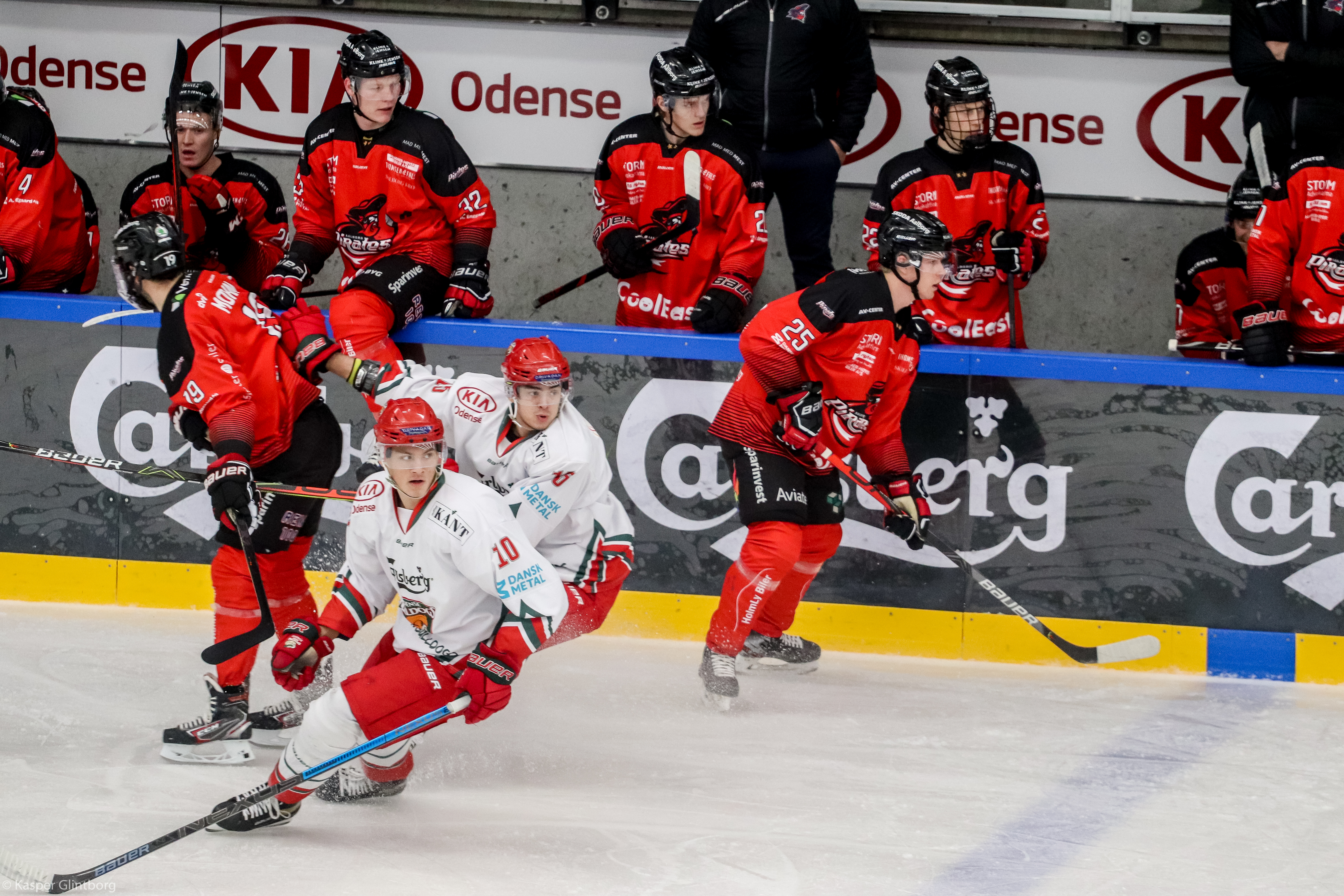 Den stilling holdt dog ikke længe, for godt et halvandet minut senere var det Jonas Jakobsen, der gjorde sin kaptajn kunsten efter. Et højt skud fra Tobias Ladehoff blev flot styret i ned i isen af Jonas Jakobsen, hvilket resulterede i en ny tremålsføring til Aalborg Pirates. 5-2 og chancer i begge ender i periodens slutfase.