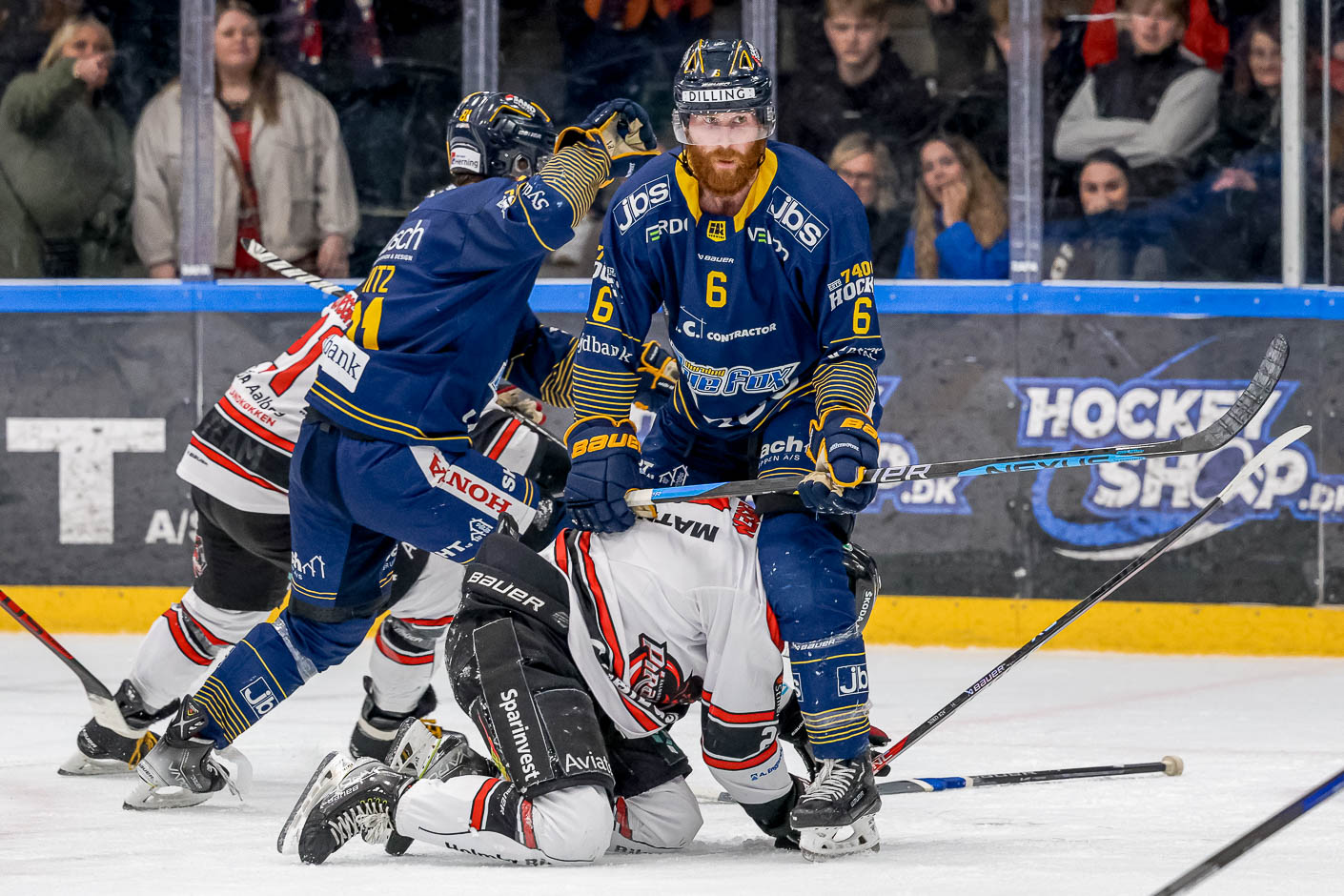 Det gav pote. Det var de to absolut farligste Herning-folk på dagen, Mathias Bau og Mathias From skabte muligheden. Bau skød, From vandt den løse puck. 2-2 med 56 sekunder tilbage og så skulle vi en tur i overtid.