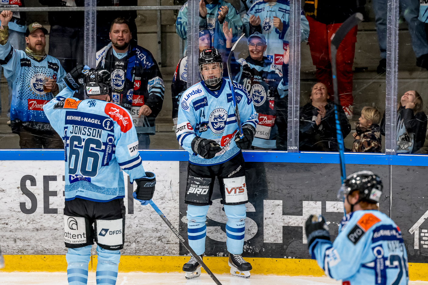 Det var Albert Schioldan der fik sendt en løs puck i kassen. Der gik ikke mange sekunder før udligningen var en realitet. Et skud fra distancen sendt ind af Nicolas Werbik endte under armen på Marcus Bjørn, og pludselig åben kamp igen.