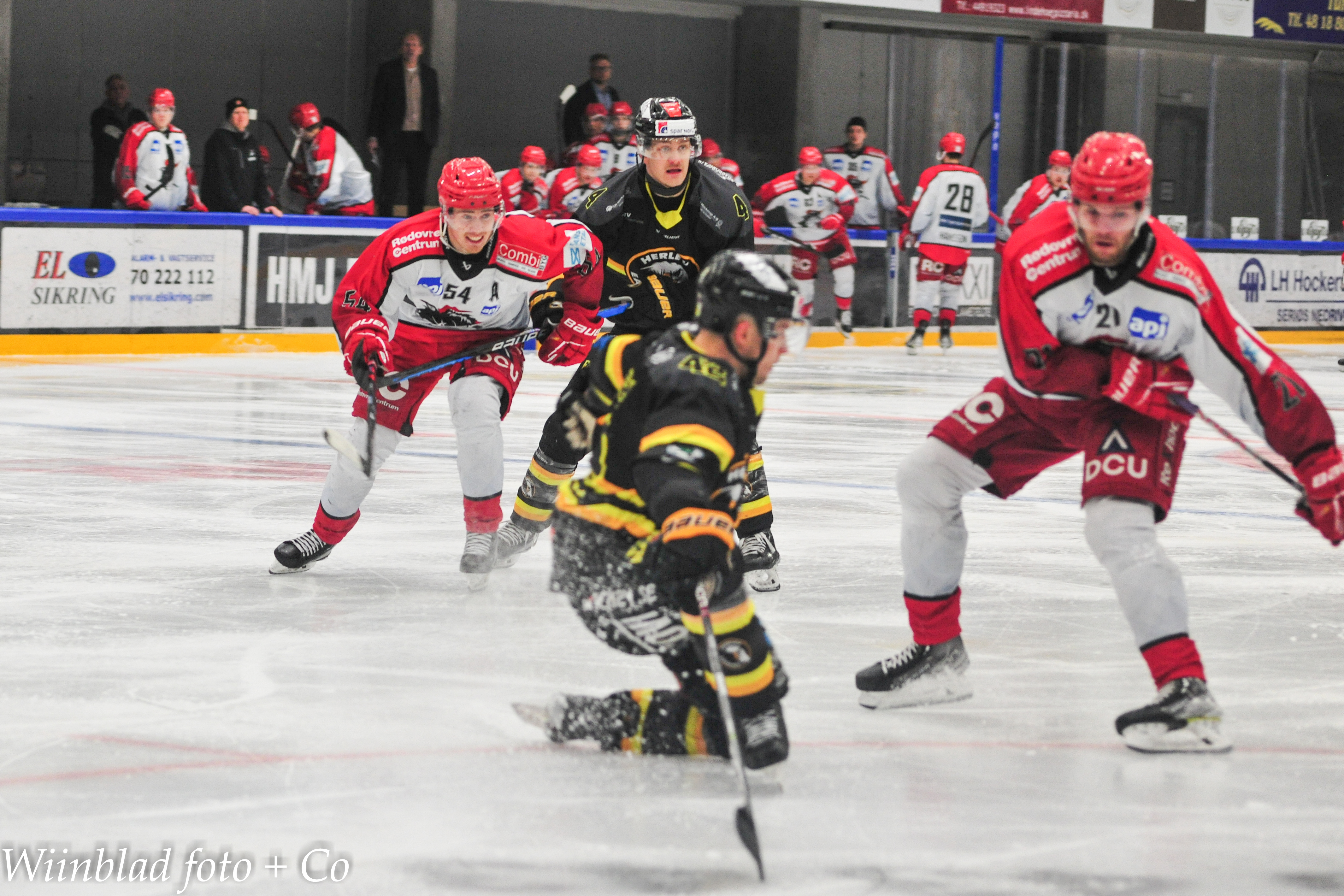Herlev spillede fornuftigt i første periode mod Rødovre, men tabte momentum som kampen skred frem. Rødovre spillede god omstillingshockey, og havde held med at overspille Herlevs pres med små pasninger op langs banden.