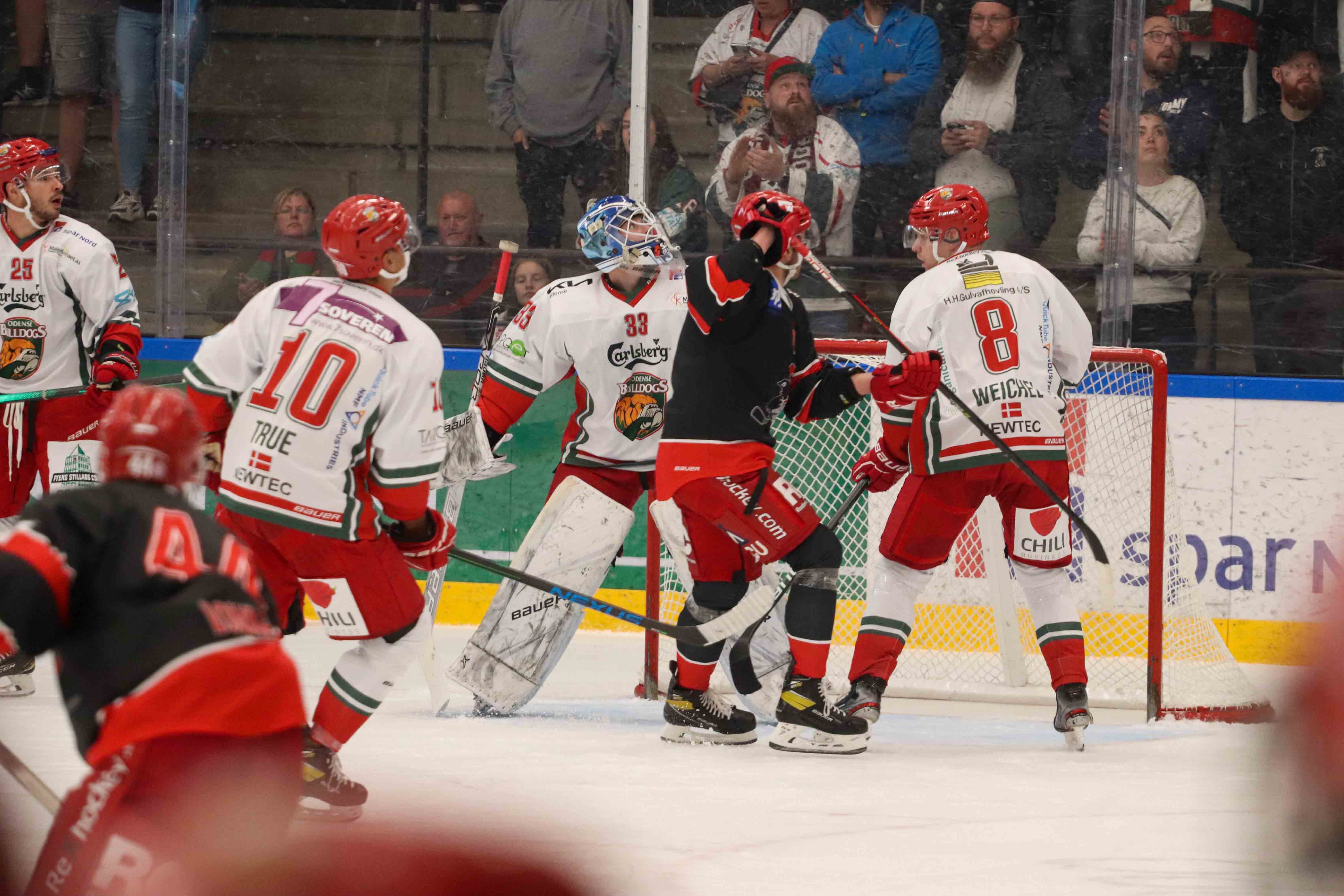 De indbyrdes kampe: Odense har vundet 6-0 og 7-2 over Rødovre i de to kampe i Spar Nord Arena, mens de tre øvrige kampe i Rødovre er endt i overtid. To gange bonuspoint til Rødovre og en omgang til Odense i de matcher.