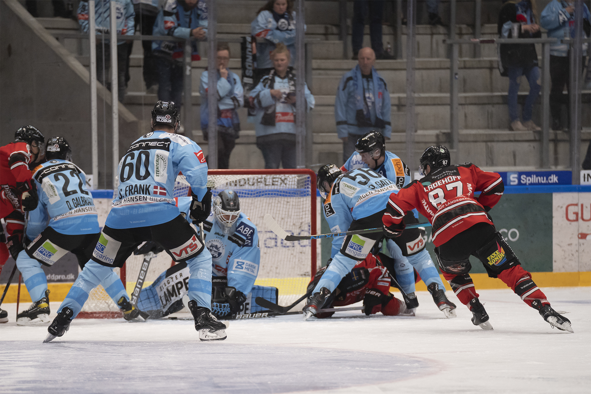 Det nordjyske tophold fik også pucken i netmaskerne efter seks minutter. Jeppe Jul Korsgaard fik lagt pucken ind til Kirill Kabanov, som afsluttede første gang. Patrick Galbraith fik benskinnen i vejen, men pucken lå stadig i feltet, og efter en større tumult, fik Julian Jakobsen prikkede pucken ind over stregen. Desværre for kaptajnen forblev stillingen 0-0 efter et længere videogennemgang fra dommerne.