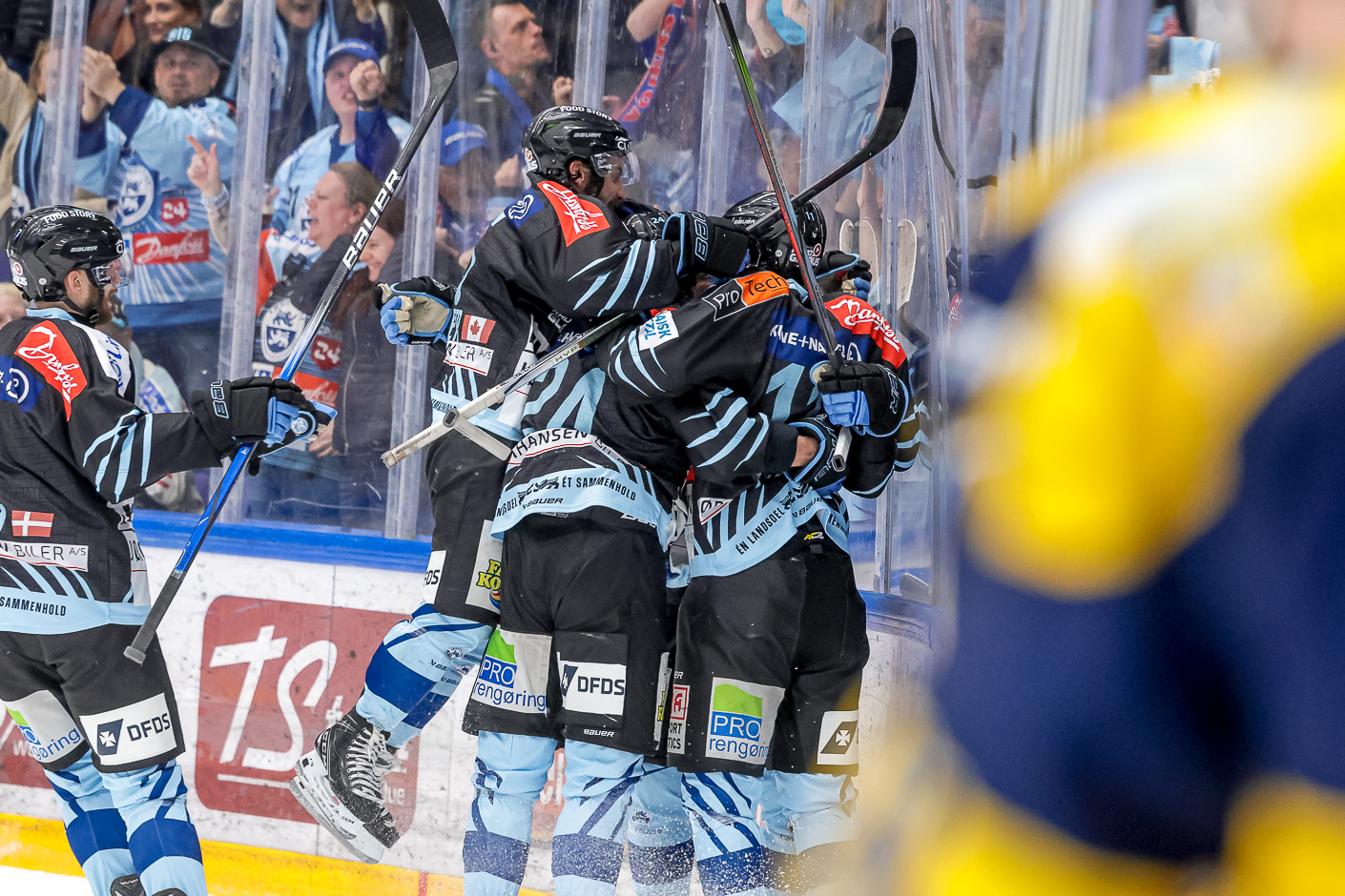 - Jeg får plads til at skøjte. Og det er noget, jeg nogle gange ikke er verdensmester til. Men jeg får plads, og så siger jeg til mig selv: "Ved du hvad. Nu kører du på kassen. J eg kan se, at Esbjerg Energy-backen mister et skridt, så jeg ved, jeg har lidt plads. Så jeg kører den rundt om ham, og så tænker jeg: "Nu tager jeg den til bagstolpen". Mathias Seldrup sætter sig ned, og jeg har frit mål på bagstolpen, og den går ind, lød det fra Jacob Schmidt-Svejstrup, inden han skulle ud og juble videre.