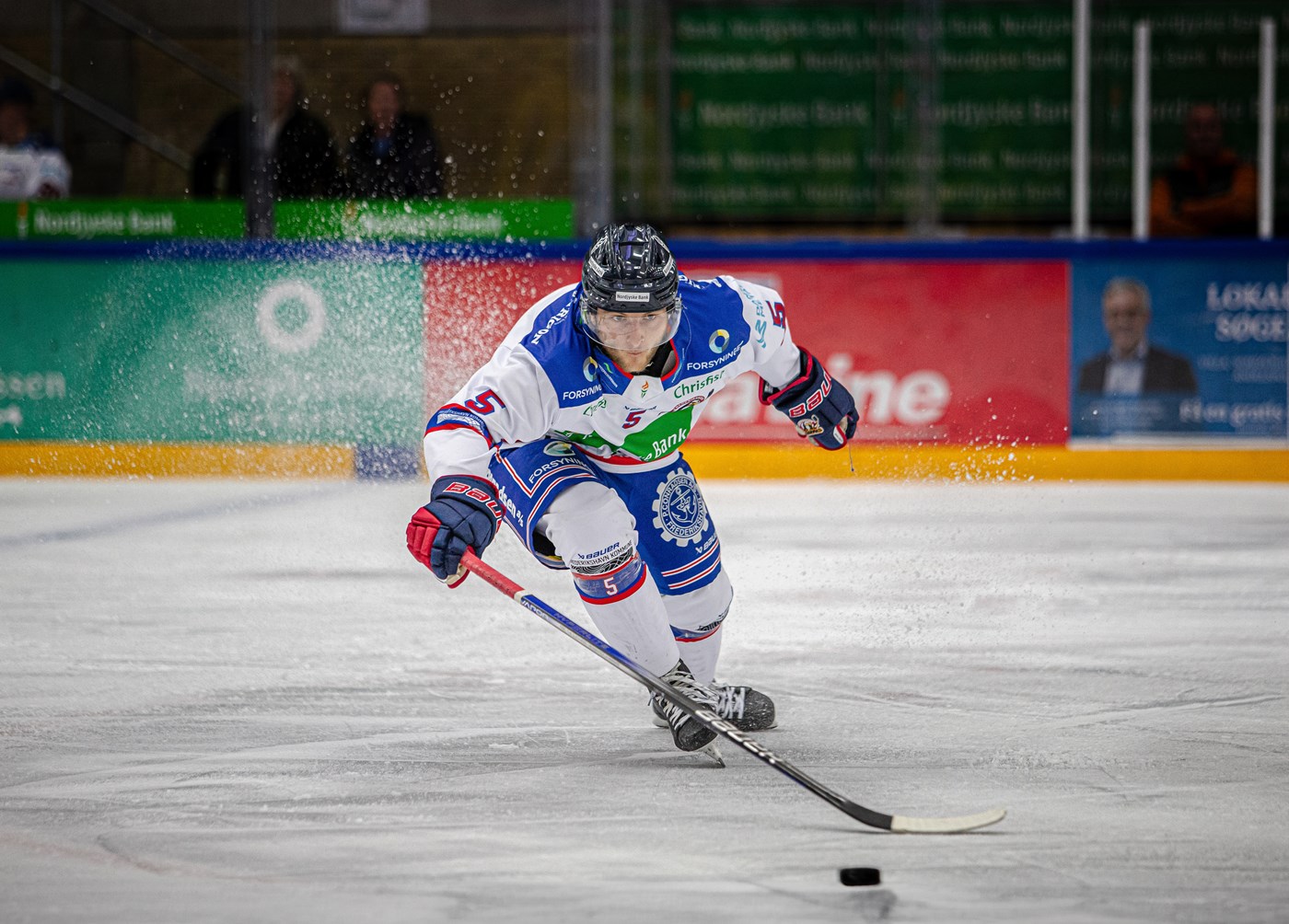 Indtil videre kunne man ikke klandre White Hawks for ikke at udnytte deres chancer. For det havde det bestemt gjort. Hele 4-0 stod der på måltavlen mod ligaens nummer tre. Læg dertil, at gæsternes Oscar Drugge nok har været lidt i gavehumør, eftersom han så lidt uheldig ud ved to af White Hawks scoringer, men derfor er føringen nu stadig fuldt fortjent. Nu handlede det om ikke at lukke gæsterne ind i kampen med nogle dumme fejl eller ”nemme” mål, som det på så klichéagtig vis hedder. Den gode Kim Larsen fik ikke lov til hvile stemmen ret meget denne eftermiddag, for blot var pucken smidt, inden hans ikoniske sang igen bragede ud af højtalerne. 5-0 til White Hawks og igen var det Sebastian Brinkmann Andersen, der fandt vejen til netmaskerne, og igen med Todd Winder i oplæggerens rolle.