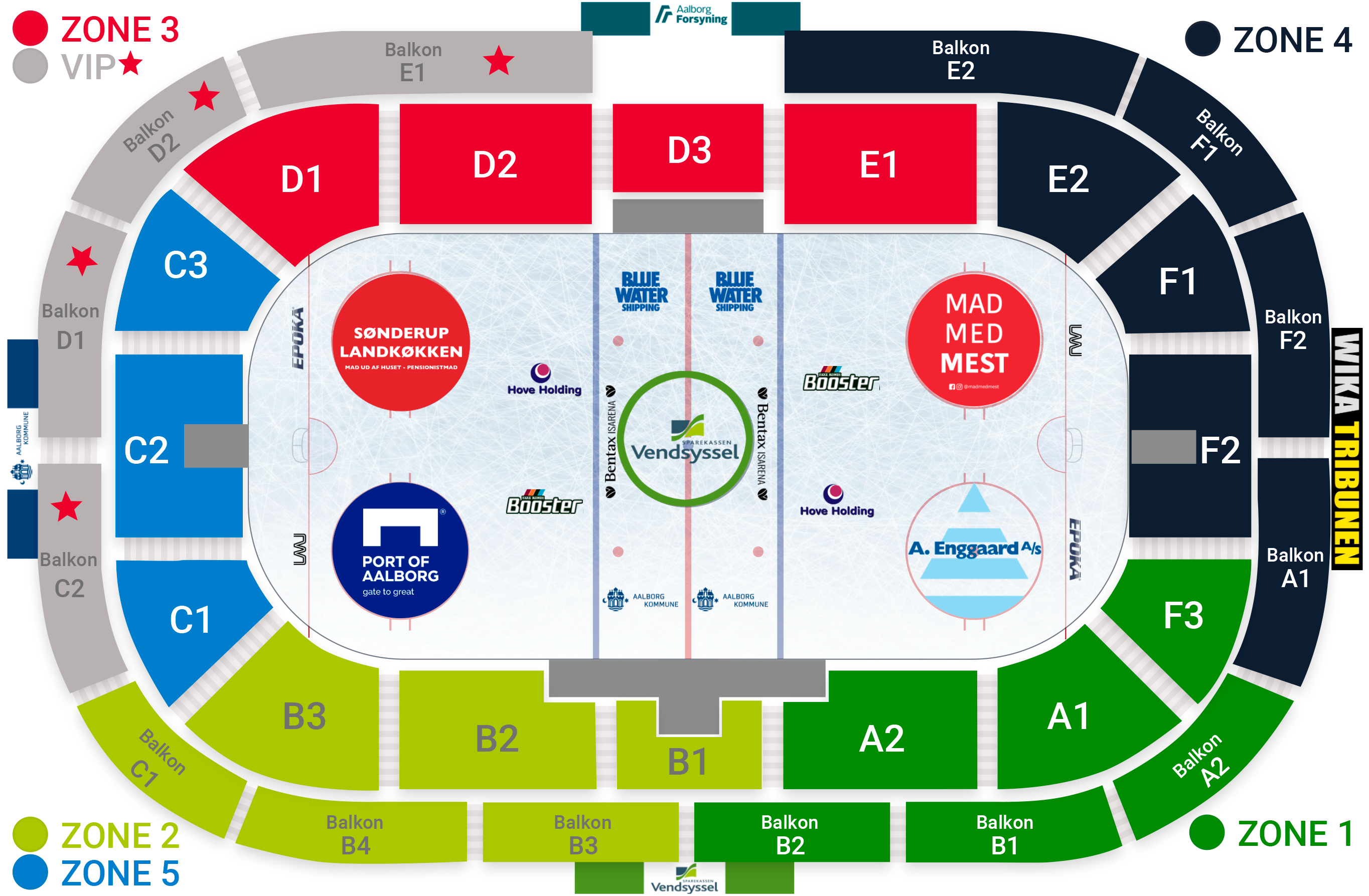 Bentax Isarena er blevet inddelt i zoner, så længe vi er underlagt corona-restriktioner. Det betyder at når man har billet, så skal man allerede inden man ankommer til hallen, være klar over hvilken indgang man skal benytte.
